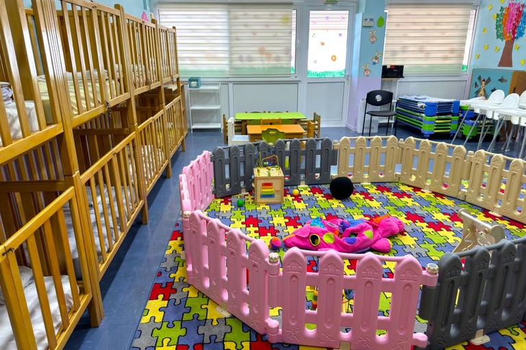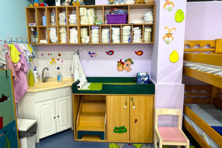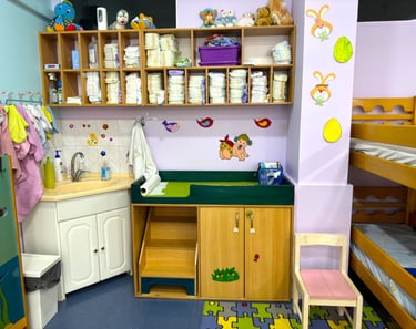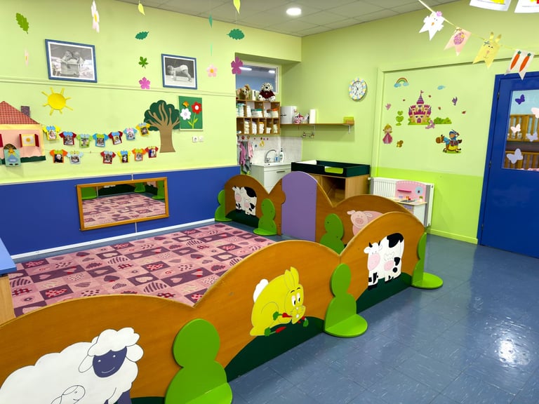 Σε έναν χώρο καθαρό, κατάλληλα διαμορφωμένο, λειτουργικό και εξοπλισμένο καλύπτουμε τις βασικές ανάγκες κάθε βρέφους: το αίσθημα ασφάλειας, την καθαριότητα, τη διατροφή, τον ύπνο. Η στοργή και η τρυφερότητα με την οποία περιβάλλεται κάθε βρέφος ξεχωριστά αλλά και τα ερεθίσματα που του προσφέρονται, διασφαλίζουν την ευχάριστη παραμονή του στον παιδικό σταθμό και την περαιτέρω εξέλιξή του, ψυχοσωματικά και νοητικά.
