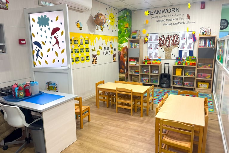 Το κουκλοθέατρο, τα παραμύθια (λογοτεχνία), τα τραγούδια καθώς και όλες οι δραστηριότητές μας συμβαδίζουν με την εβδομαδιαία θεματολογία μας. Τα παιδιά μαθαίνουν να αυτοεξυπηρετούνται κυρίως στο φαγητό και να εξελίσσουν τις δυνατότητες τους.